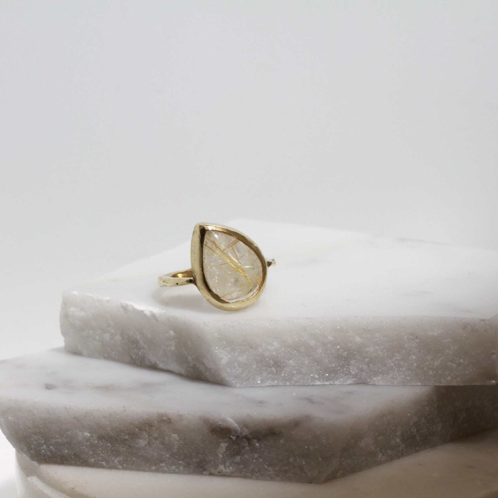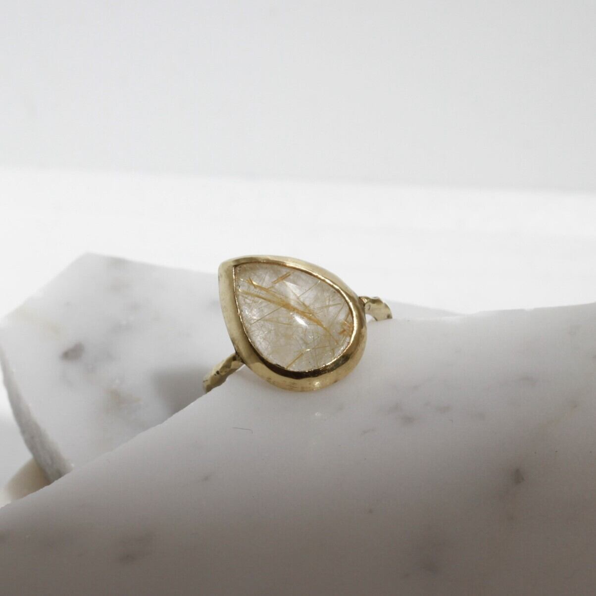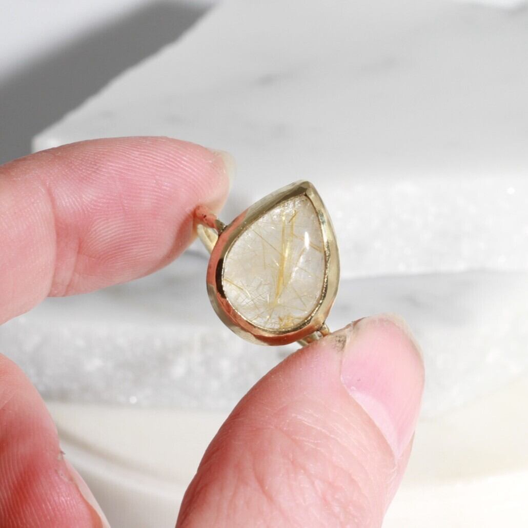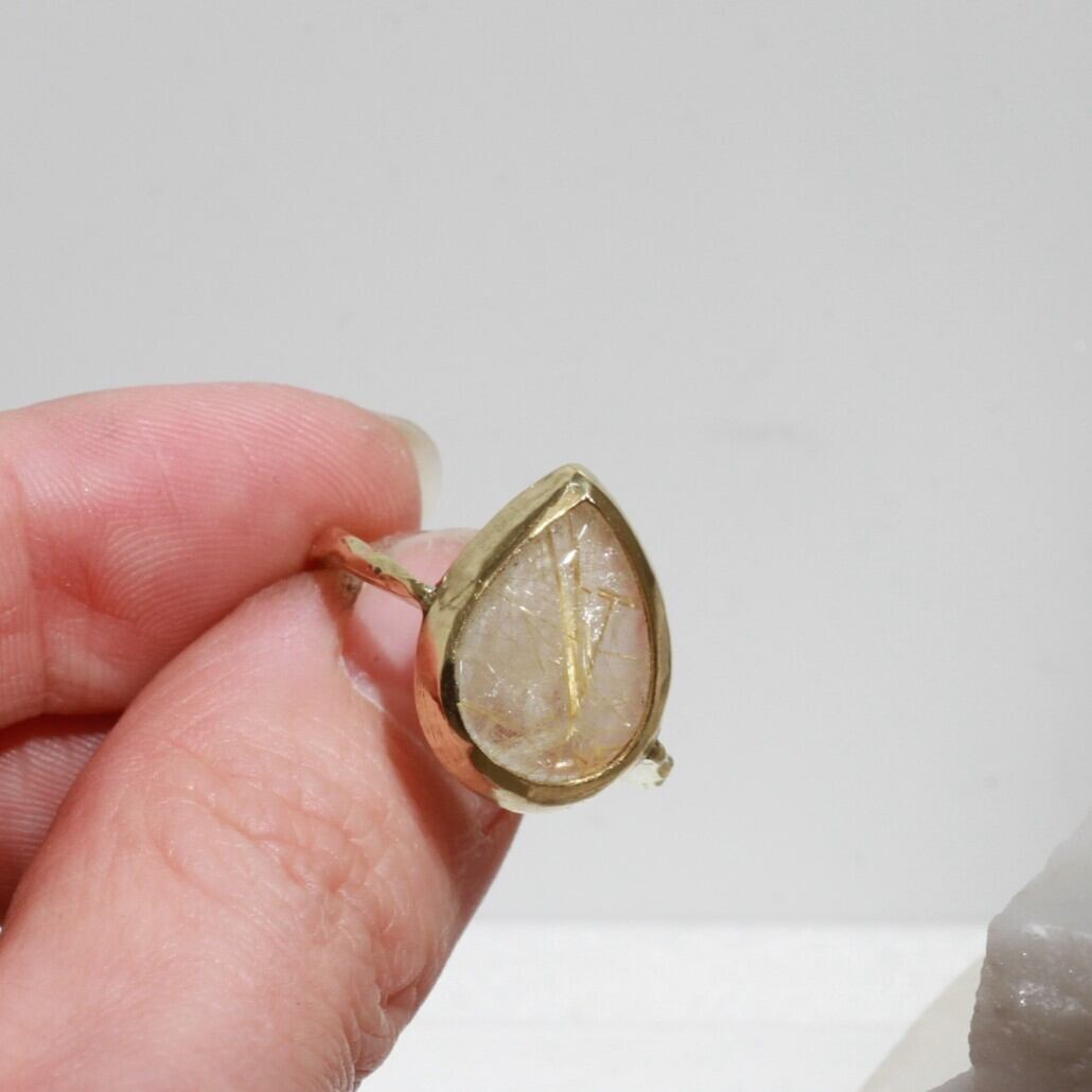 ころんと傾いた、しずく型のルチルクォーツ。