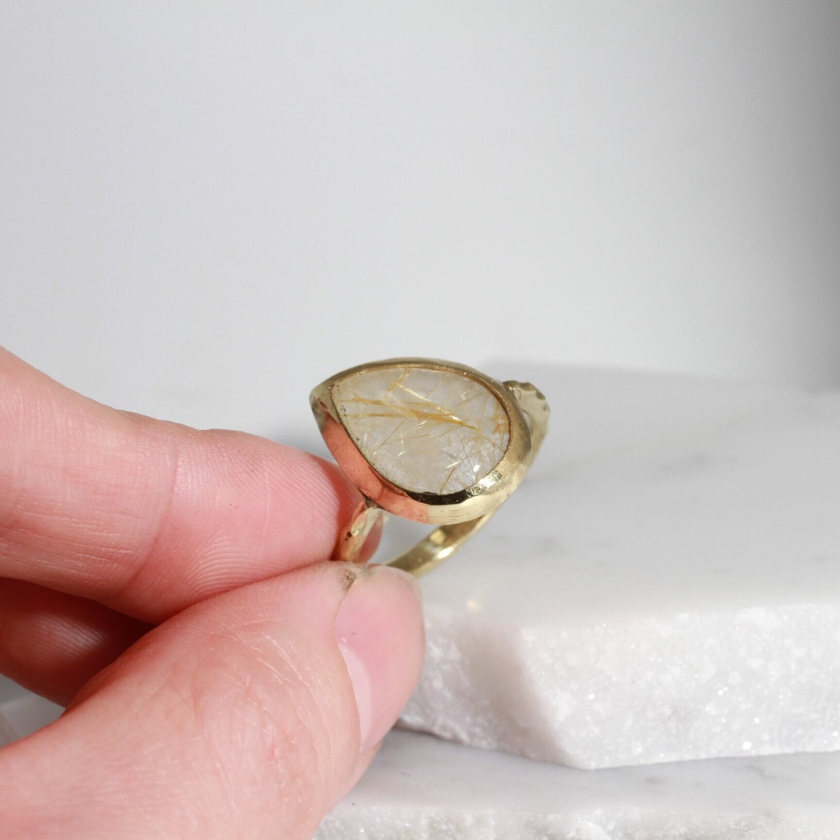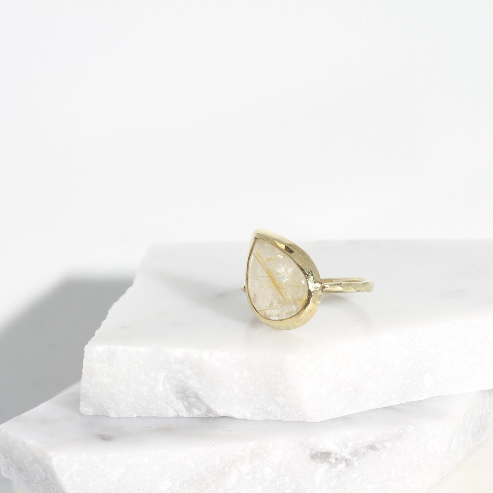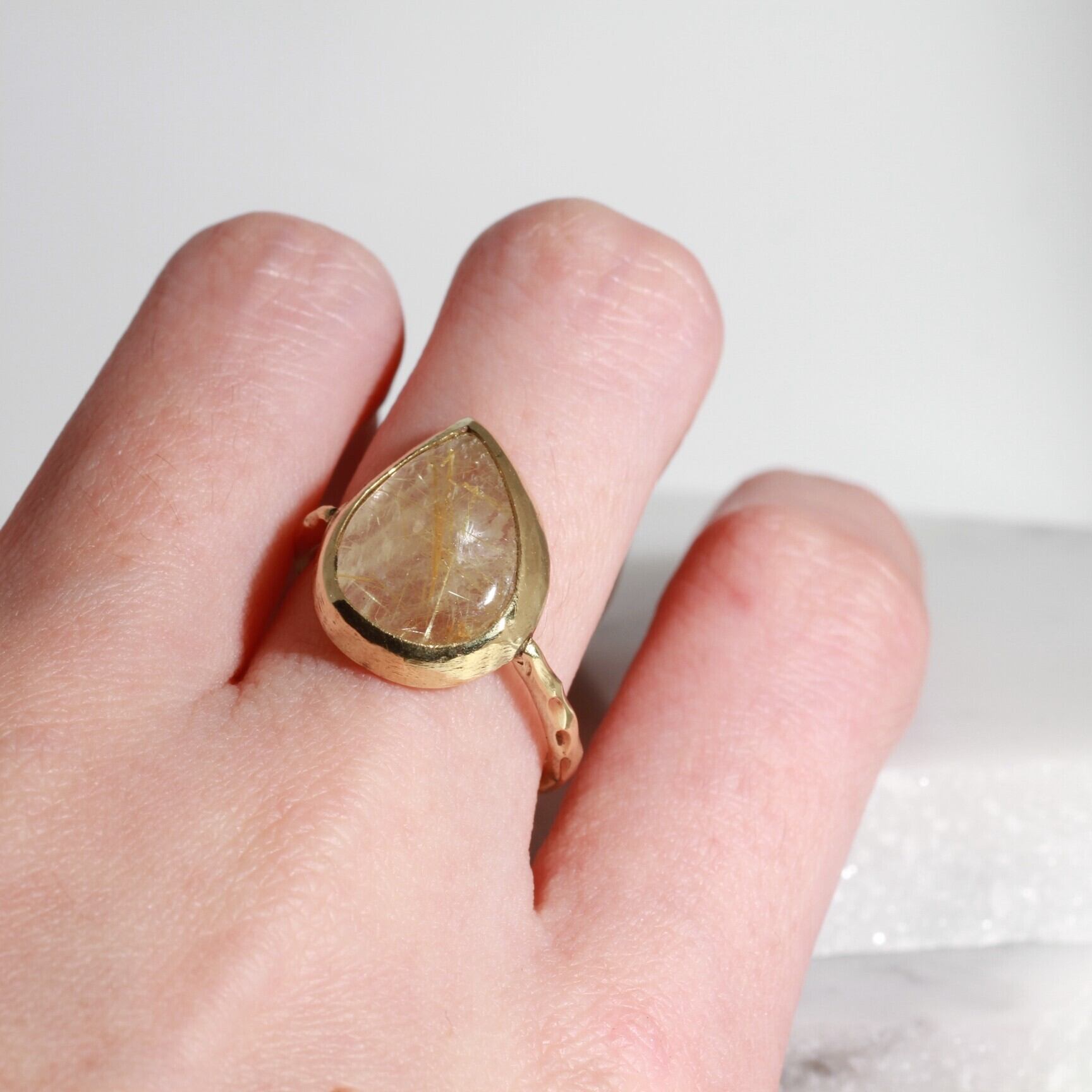 ころんと傾いた、しずく型のルチルクォーツ。