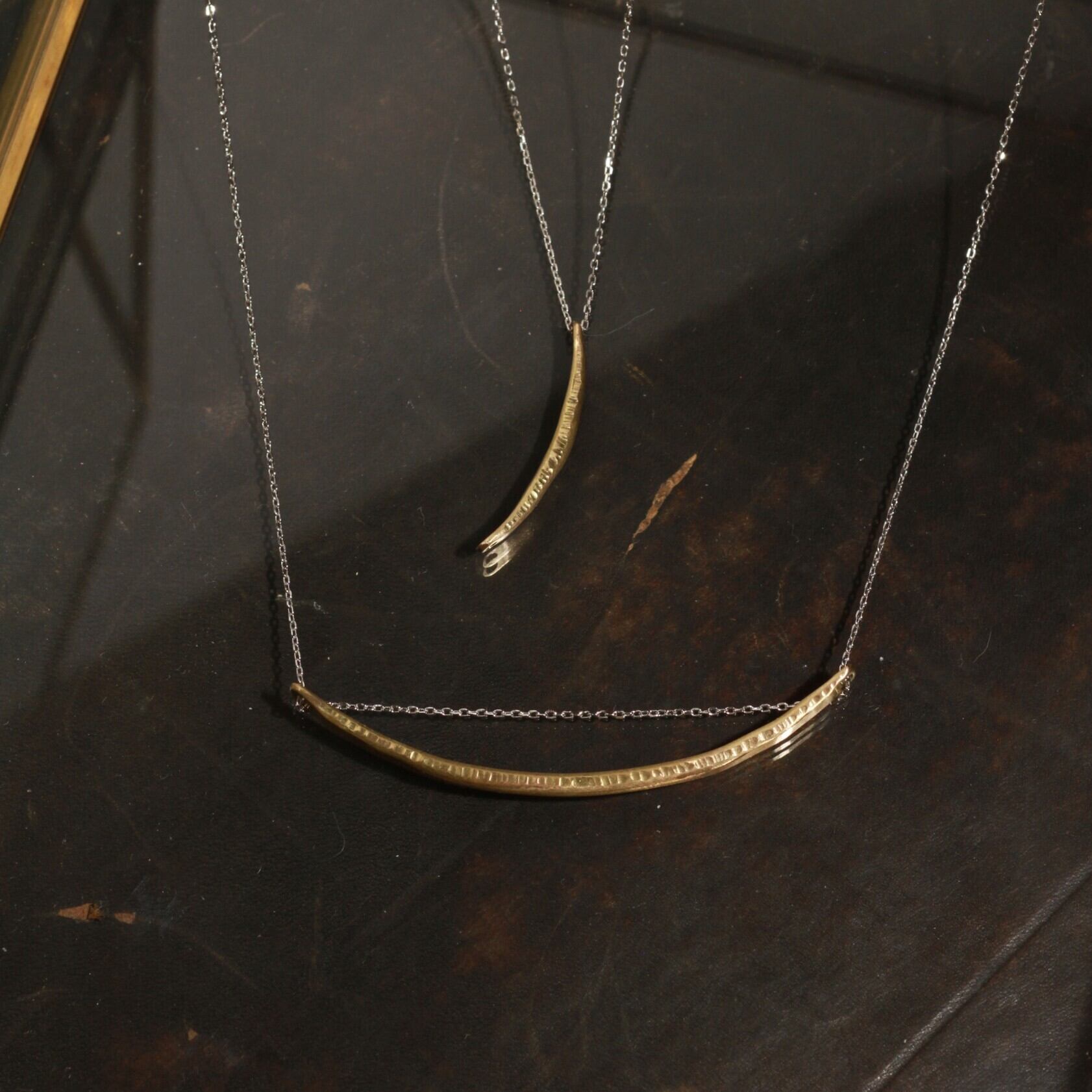 チェーンの通し方で、両吊りの横長ネックレス⇔縦長の三日月ネックレスとして使え、