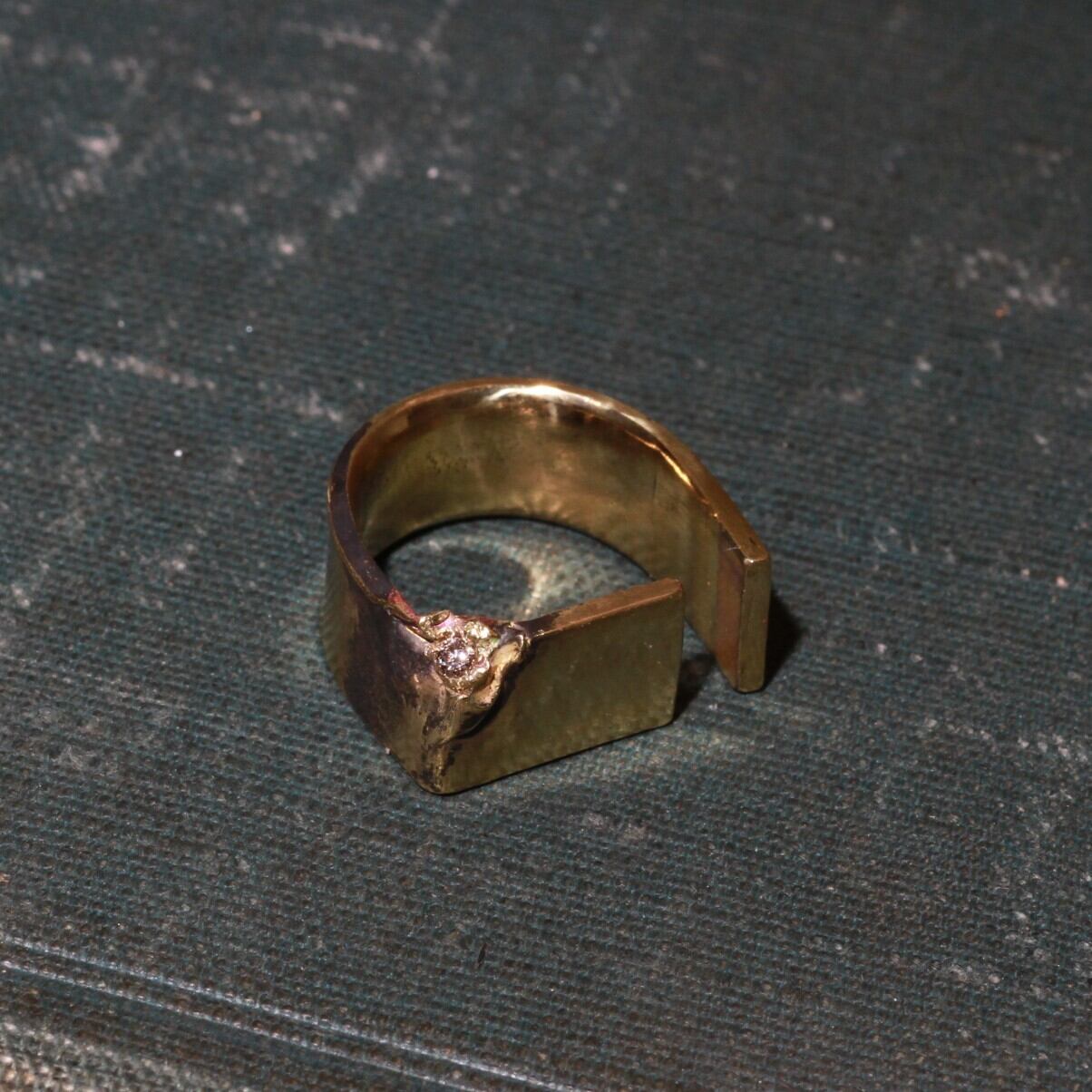 Melted Brass Ring – Diamond 真鍮/diamond 0.03ct