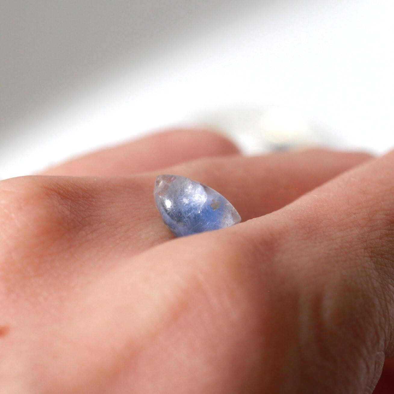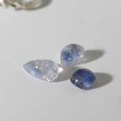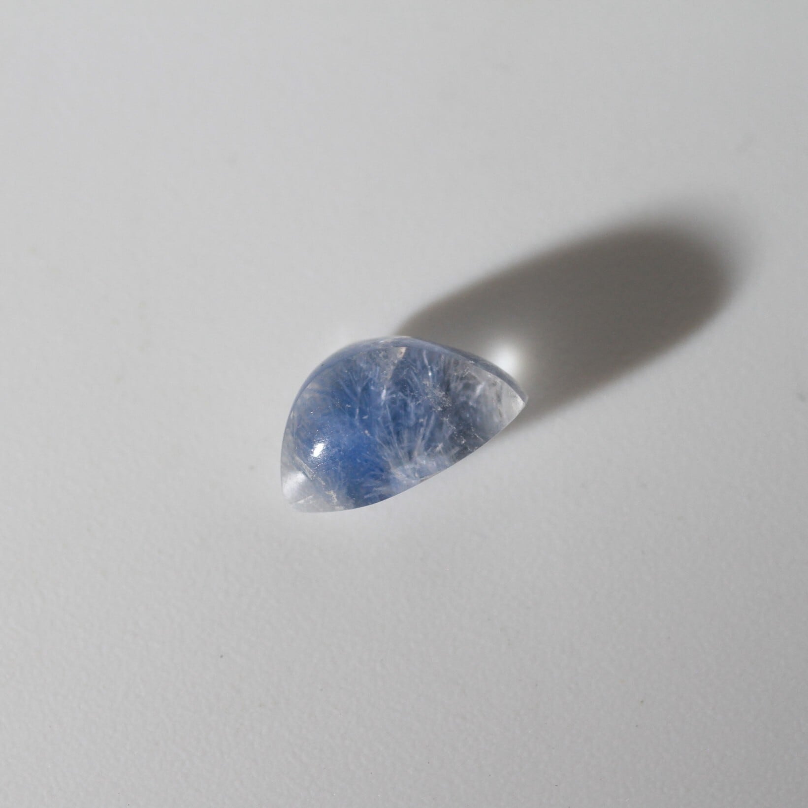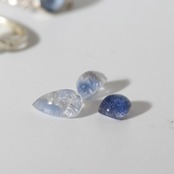 色濃いブルーのもやの上に、クラックがきらりと光るルース。