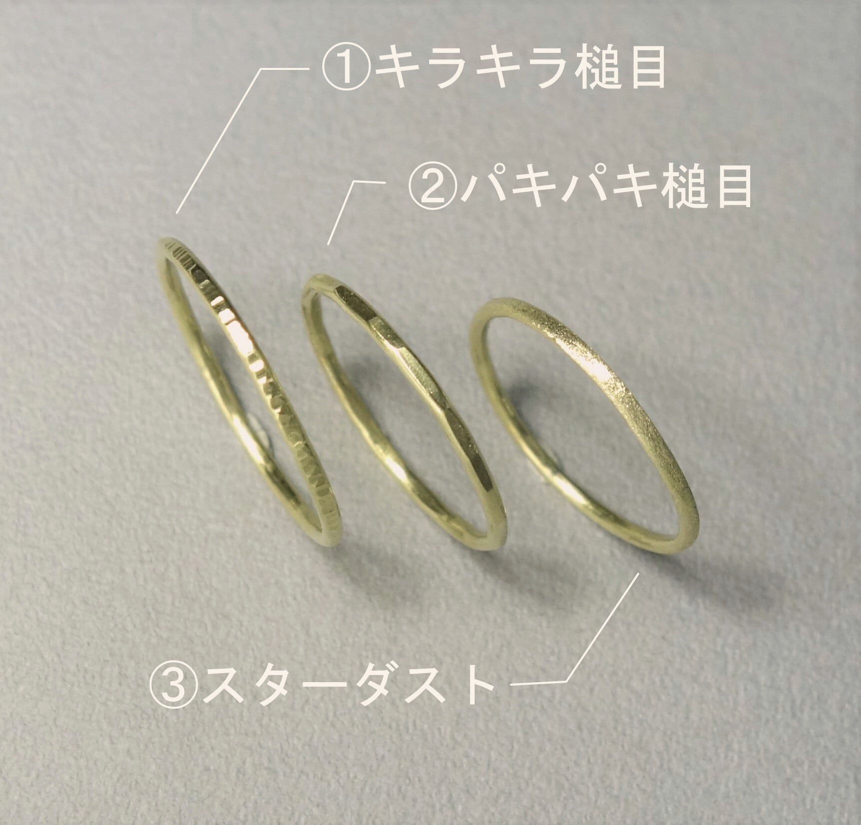 ③スターダスト:マットなつや消しで、手になじむ落ち着いた印象のリング