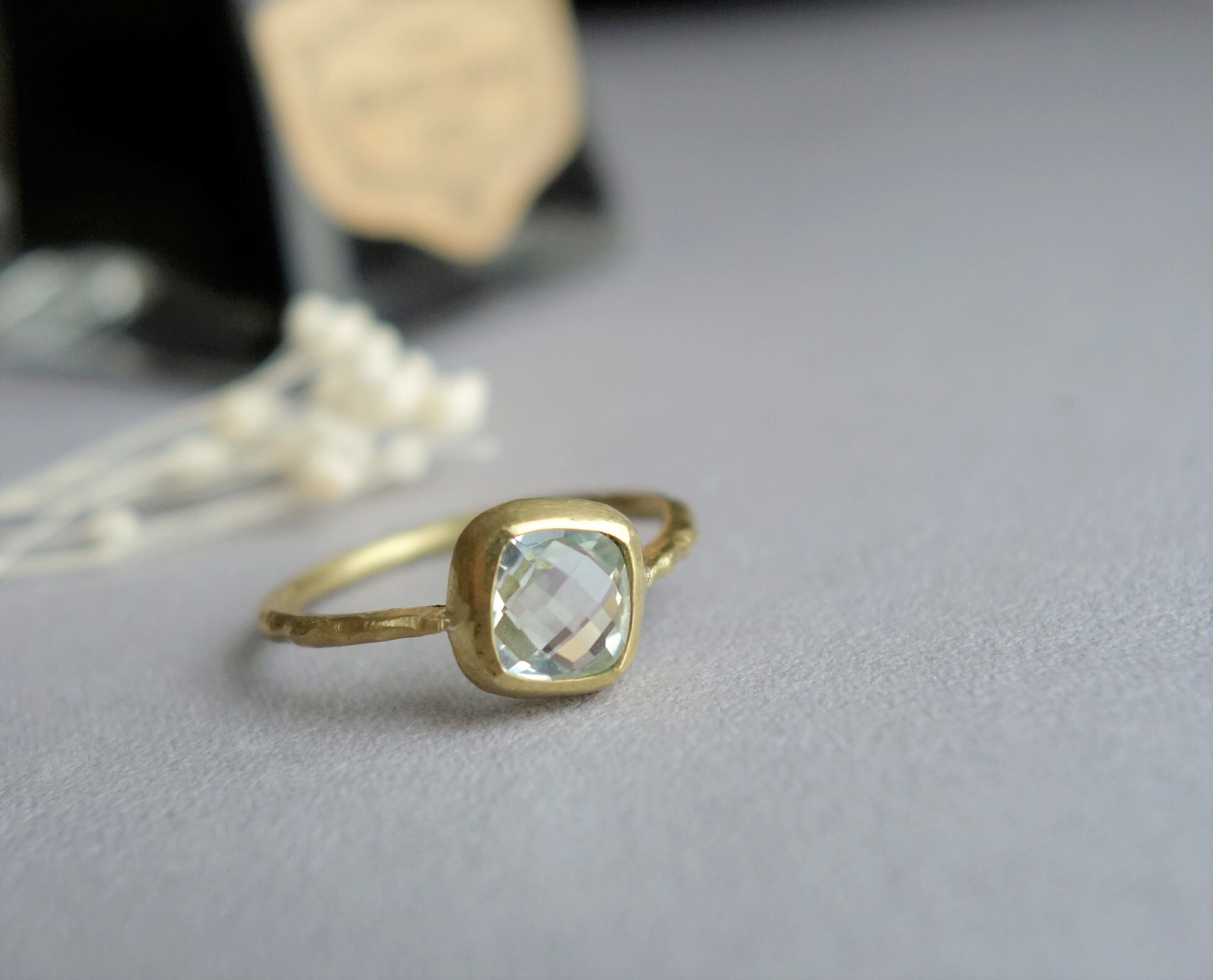 瑞々しいグリーンアメジストの石を少し傾けてセッティングしたリングです