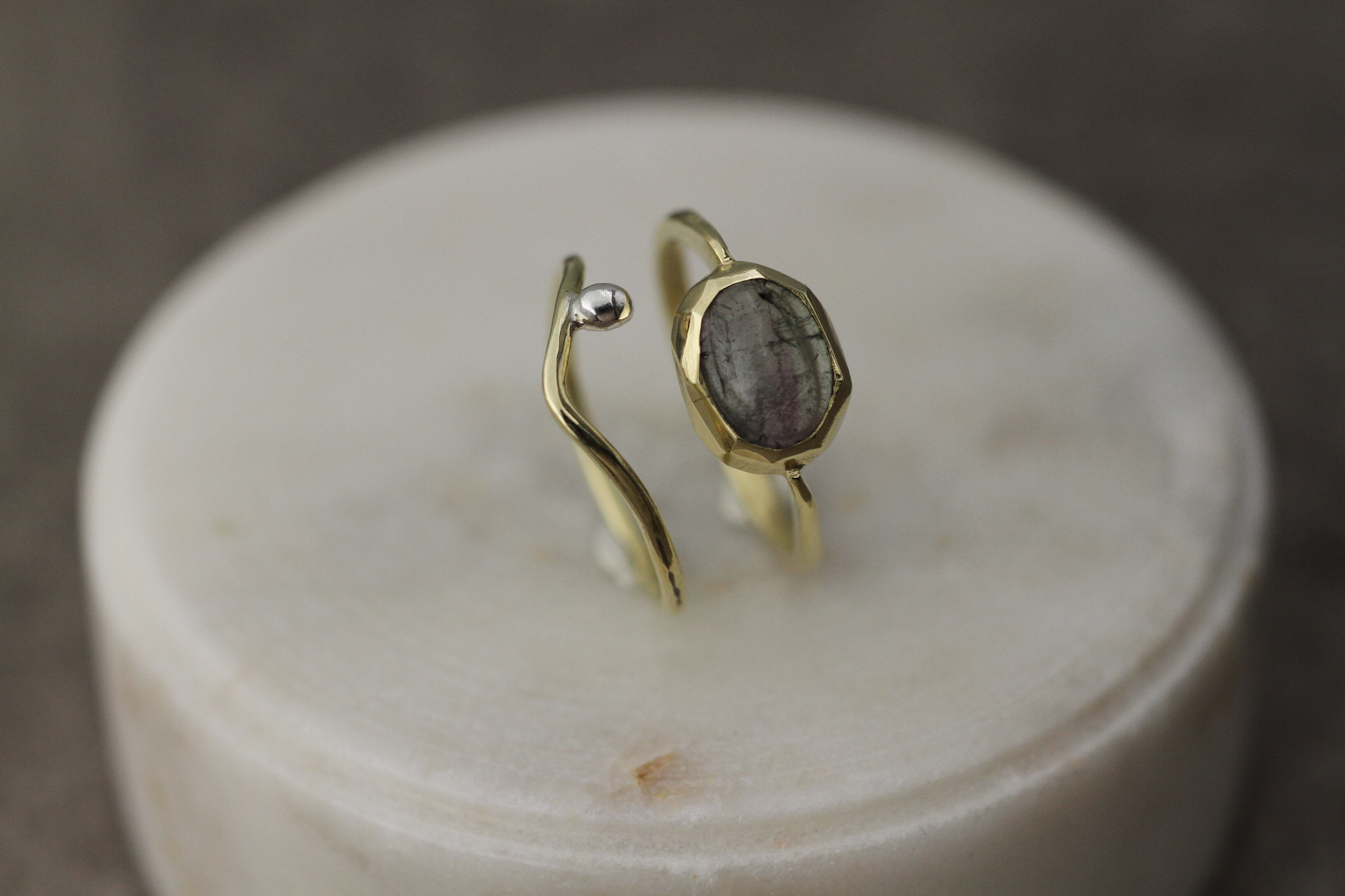 神秘的なフローライトを氷で包んだような、雹をイメージしたリングです
