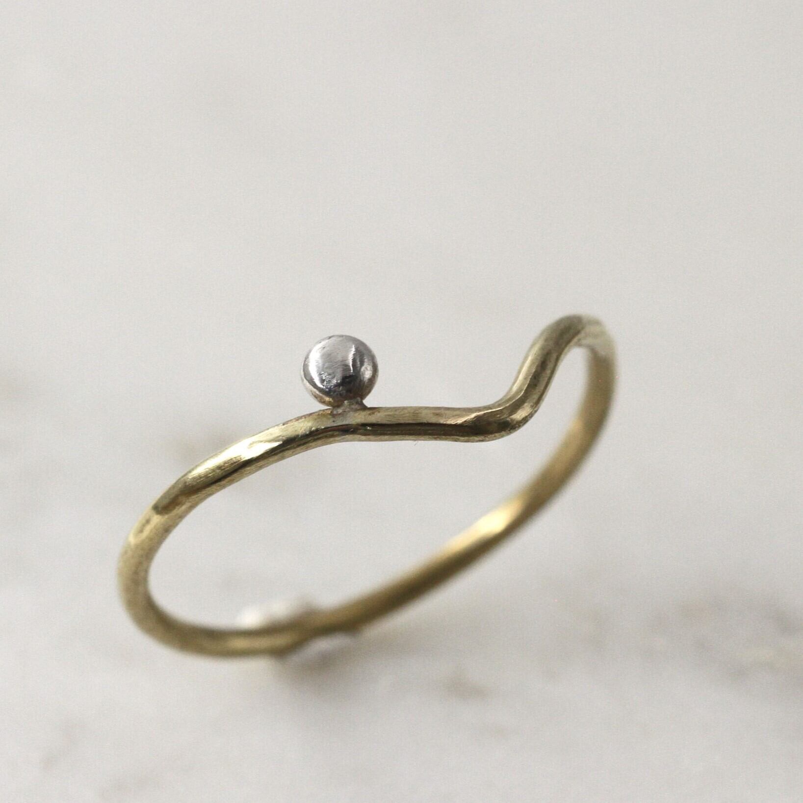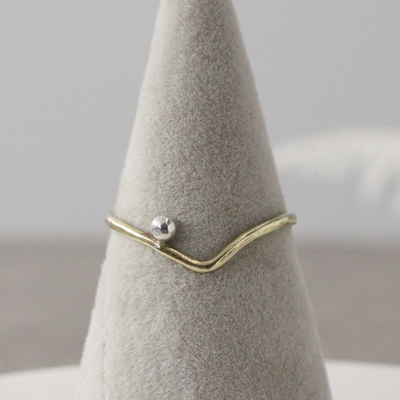 v字の華奢な真鍮の腕に純銀の粒をセッティングしました