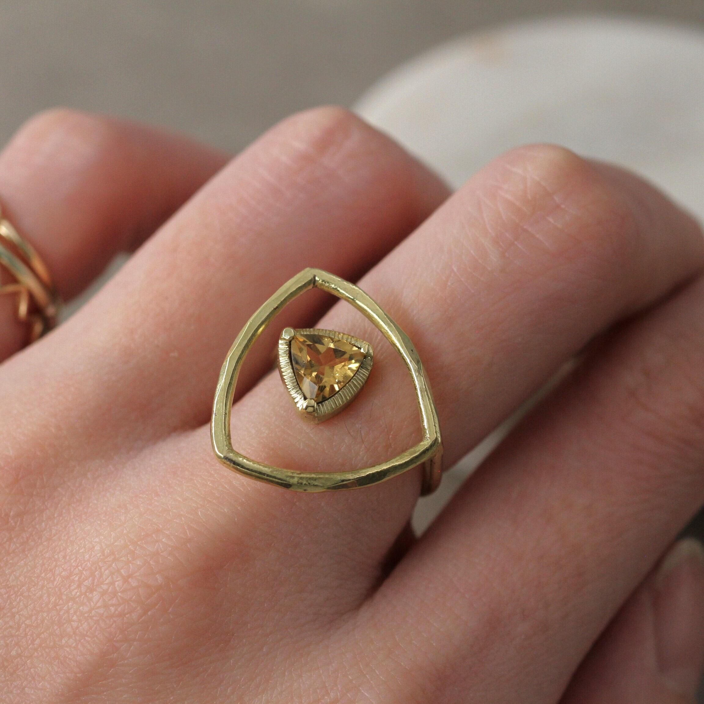 はちみつ色のシトリンが、真鍮の深いゴールド色とマッチ
